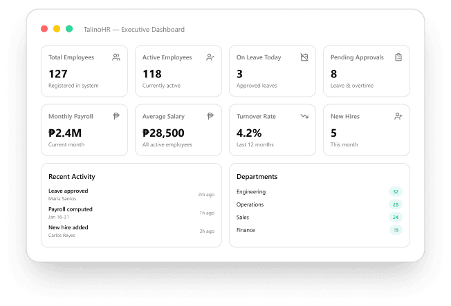 "Before TalinoHR, our HR officer would spend the entire week before cutoff just checking SSS tables and encoding payroll. Now she finishes in half a day. The BIR reports alone are worth the subscription."
